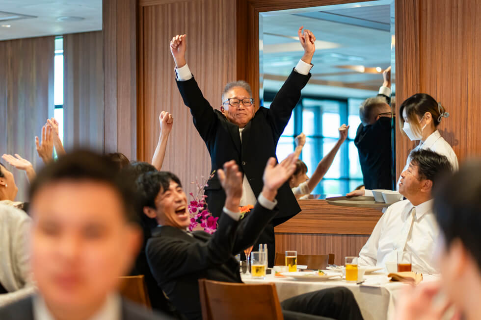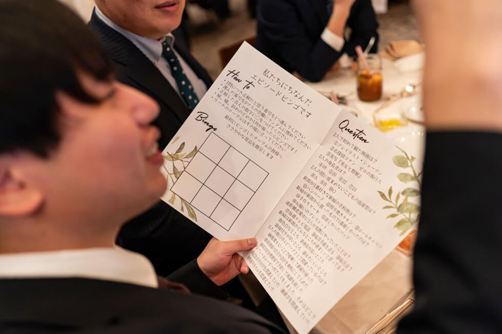 余興では、私たちのエピソードをもとにしたテーブル対抗ビンゴを提案していただき、会場全体が盛り上がりました。